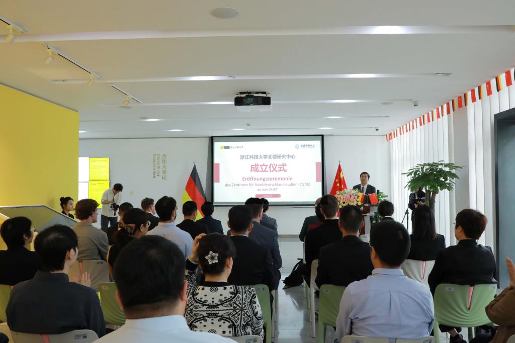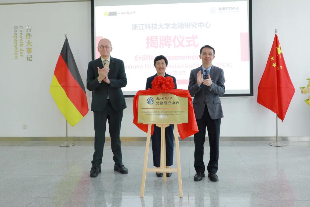 4月2日,浙江科技大学北德研究中心成立仪式举行。德国驻上海总领事贺德满(Pit Heltmann)、浙江科技大学校长陈建孟为中心揭牌,浙江省外事办公室副主任陈艳勤见证。浙江科技大学副校长李其朋主持成立仪式。